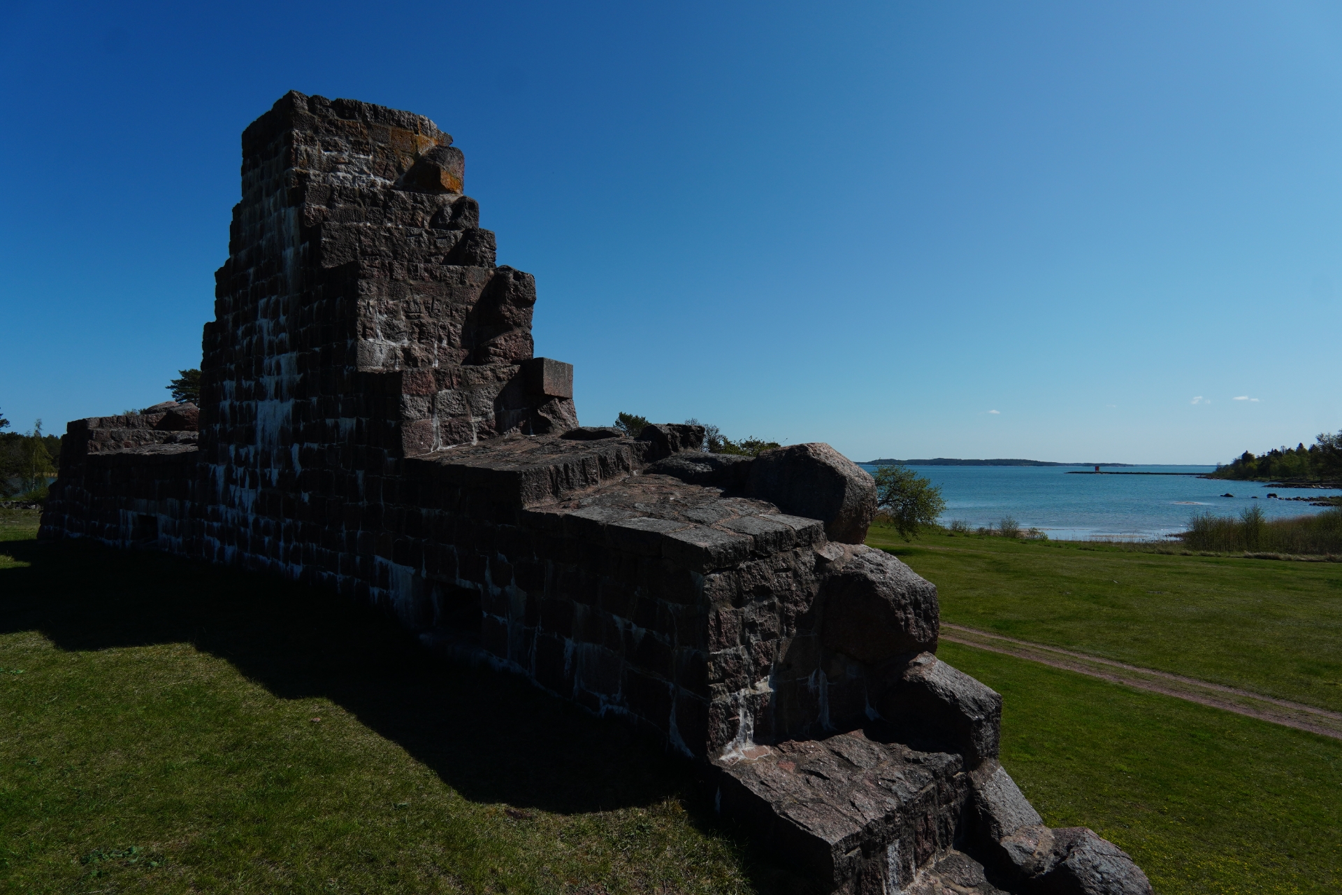 Dennoch kann man Dinge ansehen: Kastelholm und daneben das Freiluftmuseum für alte Häuser. Oder Bomarsund, wo die Russen eine riesige Festung gebaut haben, die sofort eingenommen und zerstört wurde, so dass man jetzt die Ruinen besichtigen kann.