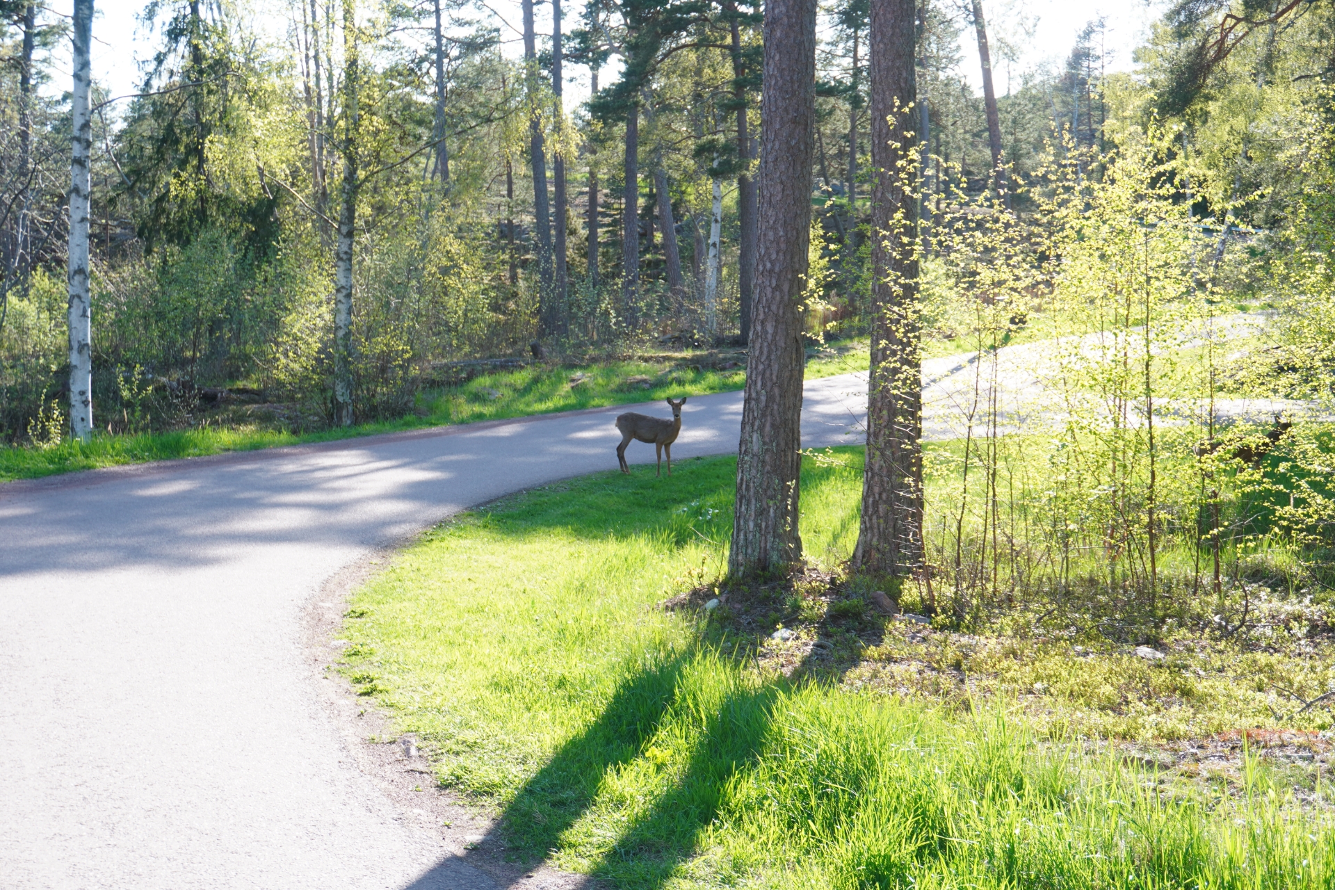 Dazu der Höhepunkt: vier Rehe, die im Stadtwald von Mariehamn einfach so den Weg gekreuzt haben.