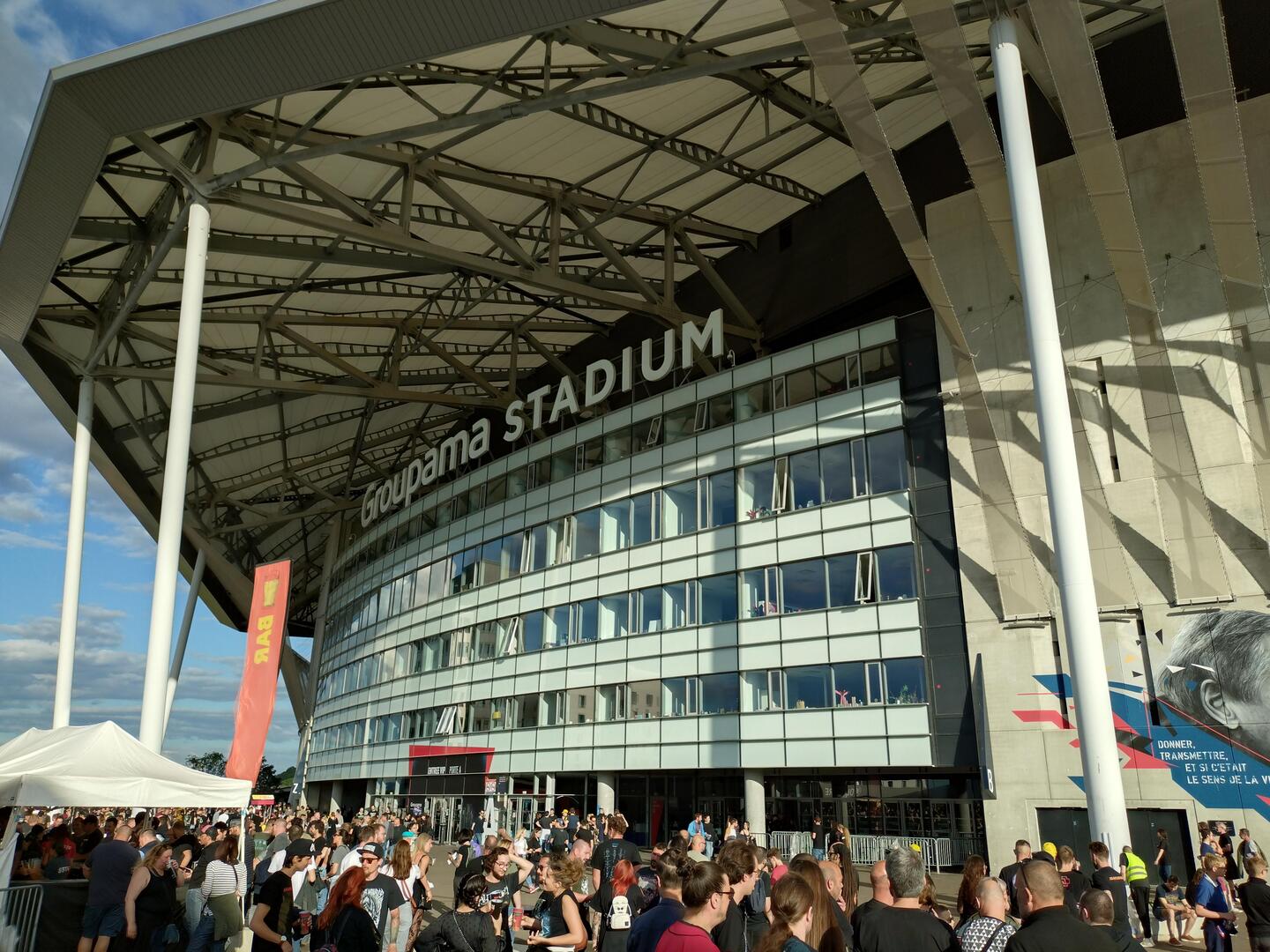 Rammstein in Lyon, Stadion von außen. Neues Jahr, neue Konzerte, diesmal also Lyon. Schönes, großes Stadion, die Fahrt zum Stadion aus der Stadt wurde durch Straßenbahneneinsatz organisiert, alles sehr vorbildlich und gut. Es könnte etwas mehr Toiletten geben aber das scheint ein Dauerproblem auch von neugebauten Stadien zu sein. [...]