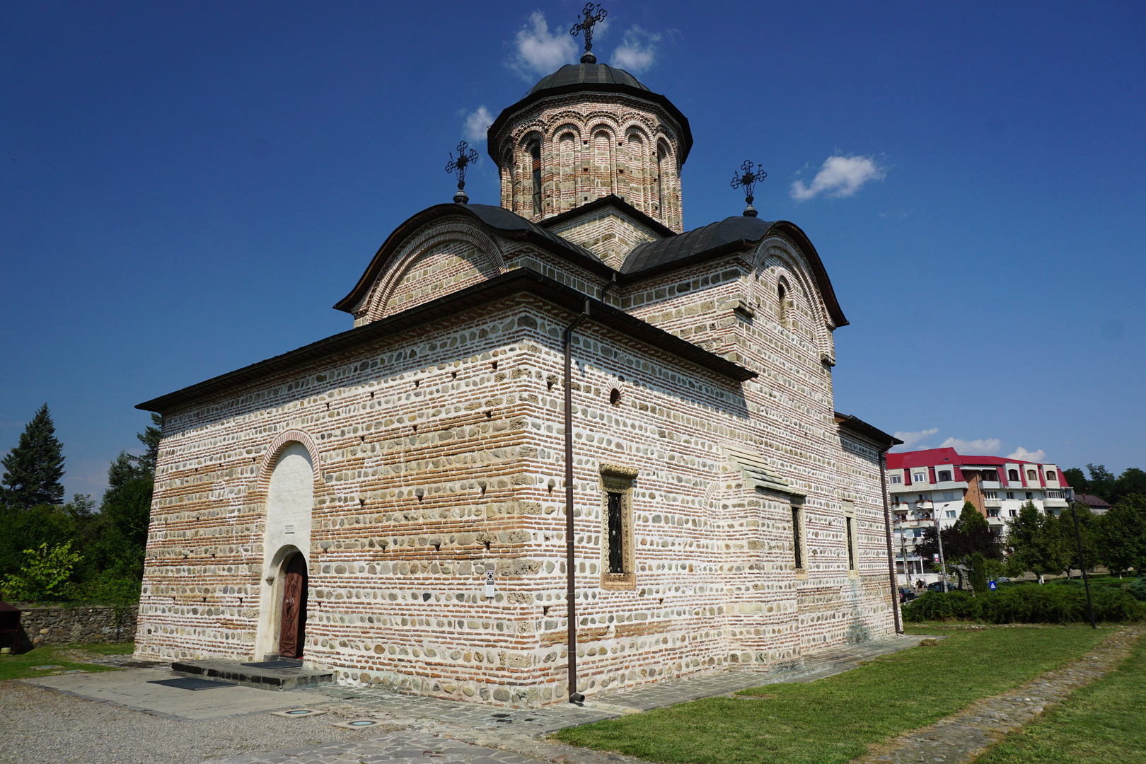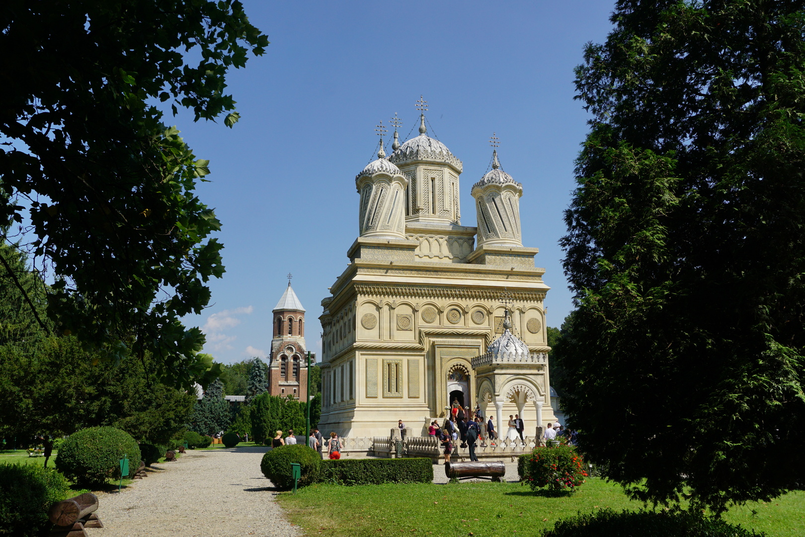 Curtea de Argeș (Schlingsel) hat eine schöne (aber kleine) orthodoxe Kathedrale und eine weitere Kirche (noch kleiner), ist aber über die Berge über die schlechteste Straße zu erreichen, die wir bisher fuhren. 60 km/h haben wir einmal geschafft, eigentlich aber 20-40 km/h mit wilden Ausweichmanövern.