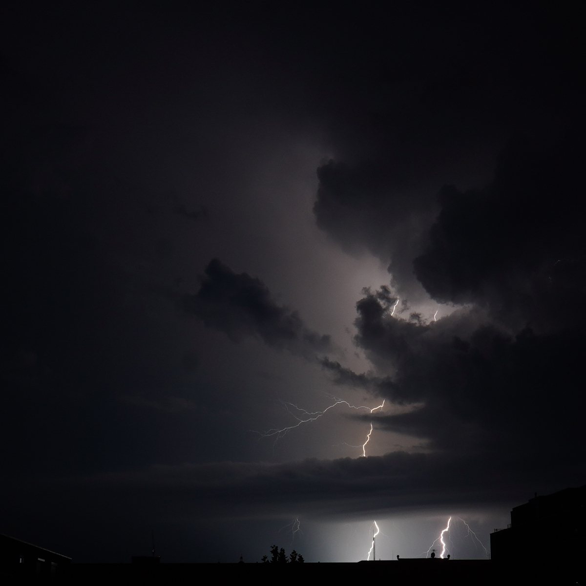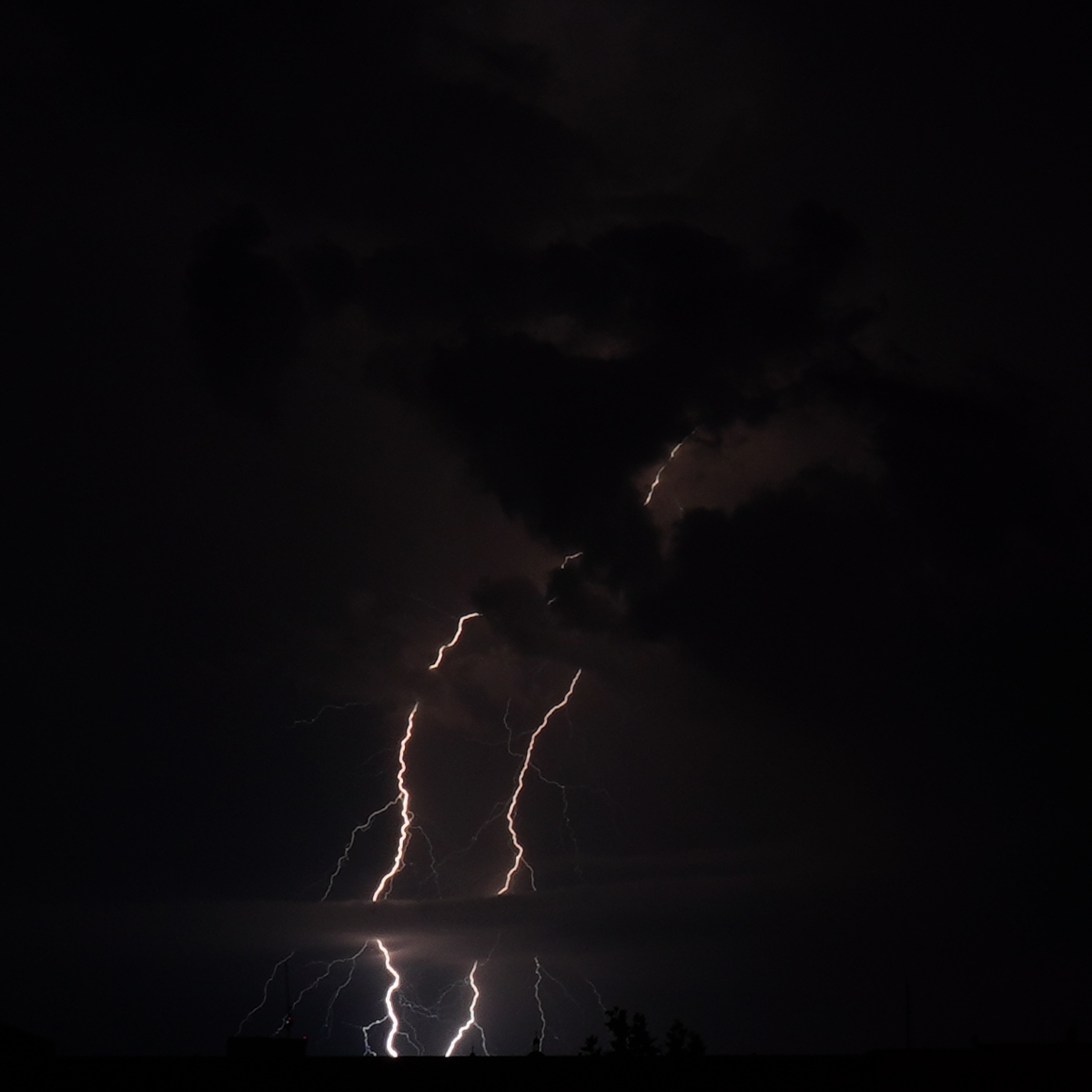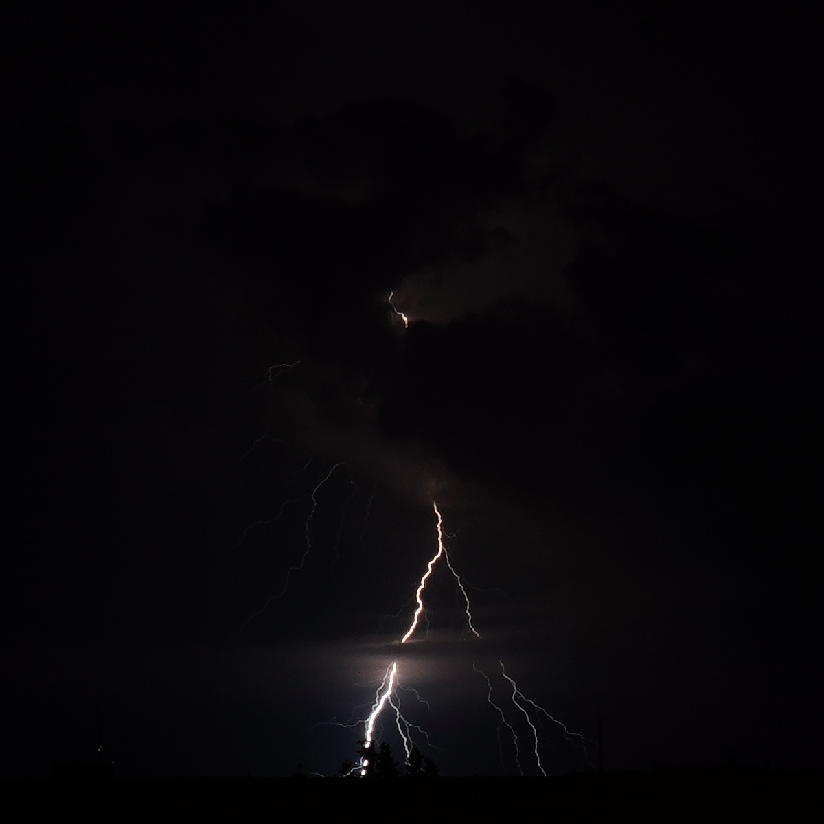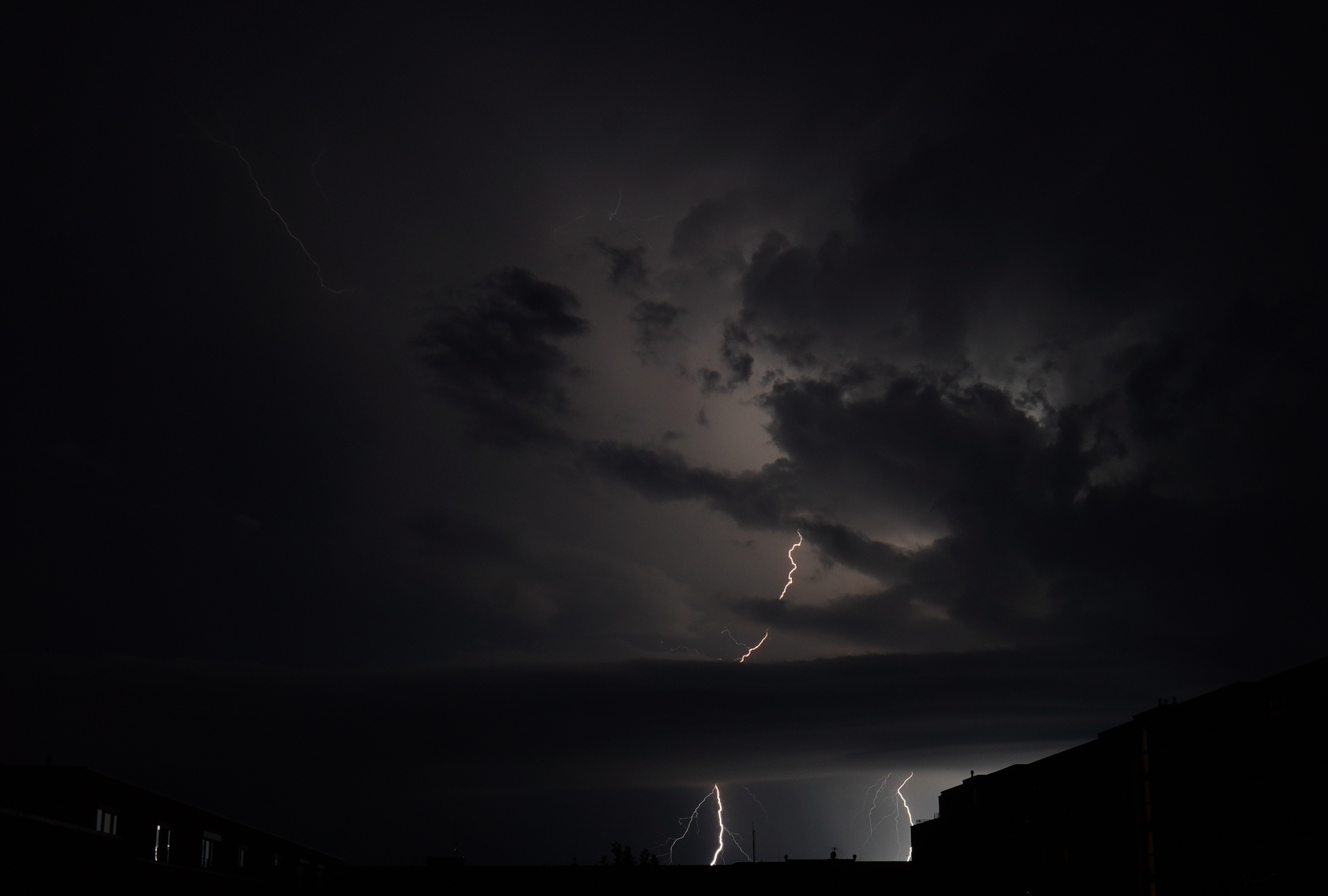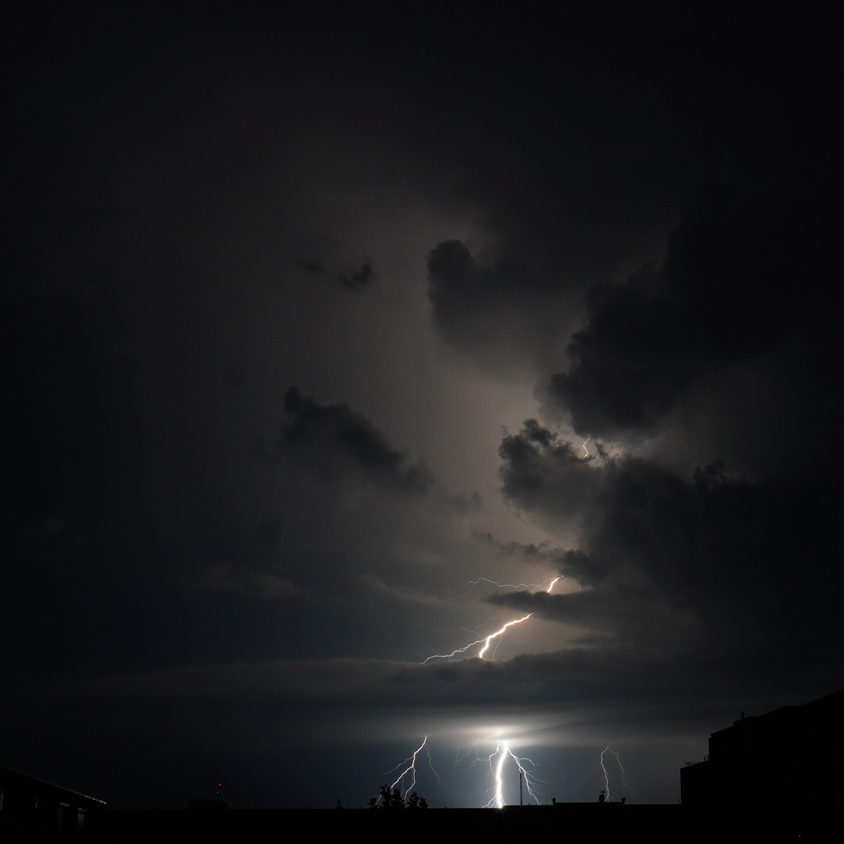 Das Gewitter vorher hatte ich die gleiche Einstellungen, nur Zeit auf Bulk und von Hand in die Richtung gehalten, für 3-5 Sekunden belichtet, dann von vorn. Da hatte ich das Stativ nicht so schnell zur Hand. Ging auch, war aber anstrengender und die Bilder auch deutlich heller durch die lange Belichtungszeit.