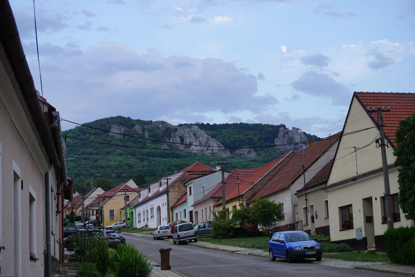 Ein kleines Dorf am Fuß eines Bergs mit Blick auf den davorliegenden Stausee. Idyllisch, warm, die Kirche bimmelt alle 15 Minuten.