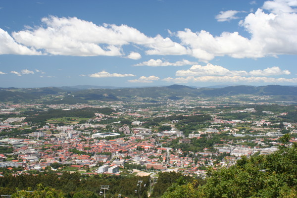 Unser erster Ort war Guimarães, eine Stadt im Norden Portugals, klein aber nett. Zunächst fällt auf, und dieser Eindruck hält sich, dass das Fußballfieber hier deutlich stärker grassiert. Ein Sender ist ständig am Berichten, Spiele, Training, Pressekonferenz, Berichte, Klassiker, … Die Fahnen an den Häusern, Geschäften, Restaurants etc. sind auch nicht zu übersehen. Das hat doch andere Ausmaße als in Deutschland.