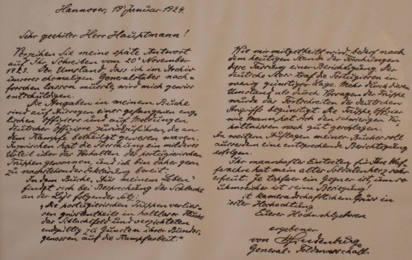 Das Bild des Jesus, stehend in den Schützengräben, kann im Museum um die Ecke besichtigt werden. Dort findet der Besucher auch einen Brief von Hindenburg an einen portugiesischen Hauptmann, in dem Hindenburg richtigstellt, dass die Passage seiner Autobiographie, die die Flucht der portugiesischen Truppen vor dem Feind darstellt, nicht korrekt ist. Vielmehr seien die deutschen Truppen einfach besser gewesen und konnten die Portugiesen so überrennen. Das mannhafte Eintreten des Hauptmanns für die Truppenehre erfreue das alte Soldatenherz und die Passage werde berichtigt.