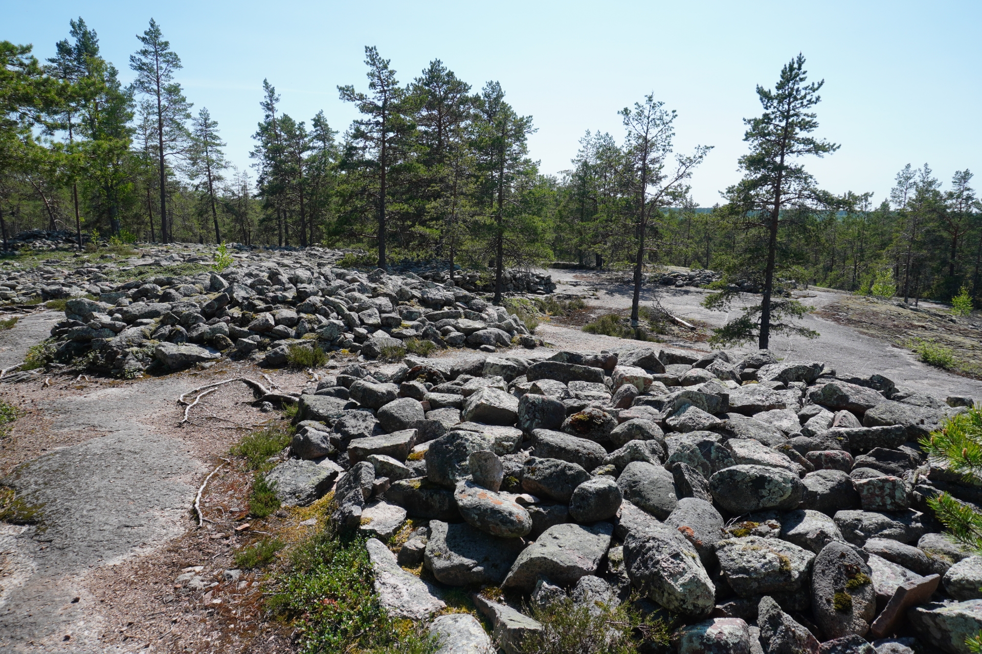 Sammallahdenmäki wurde relativ spät als Kulturgut “entdeckt”, im Endeffekt sind es große Steinhaufen, die sicher von oben aus einiger Entfernung schöne Muster aufzeigen, von Nahem aber Steinhaufen sind. Bis auf eins, das ist ein viereckiger Steinhaufen. Zur Entstehung am Meer, jetzt weit im Landesinneren, auch Finnland hebt sich seit der Eiszeit noch sehr stark. Sehenswert aber nicht wirklich beeindruckend, die Haufen. Dafür sehr schöne Gegend mit seltsamem Moos und abgestorben wirkenden Bäumen.