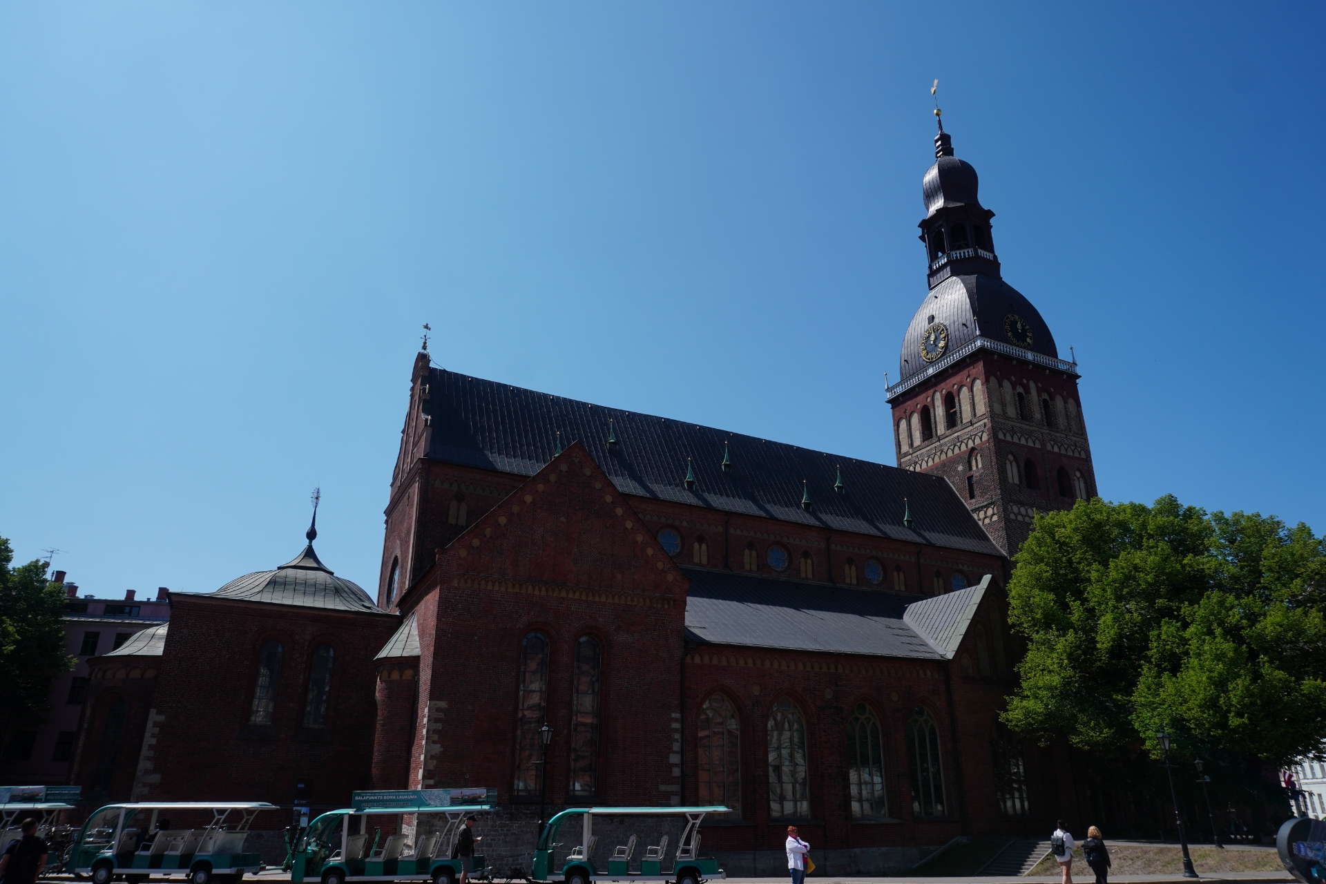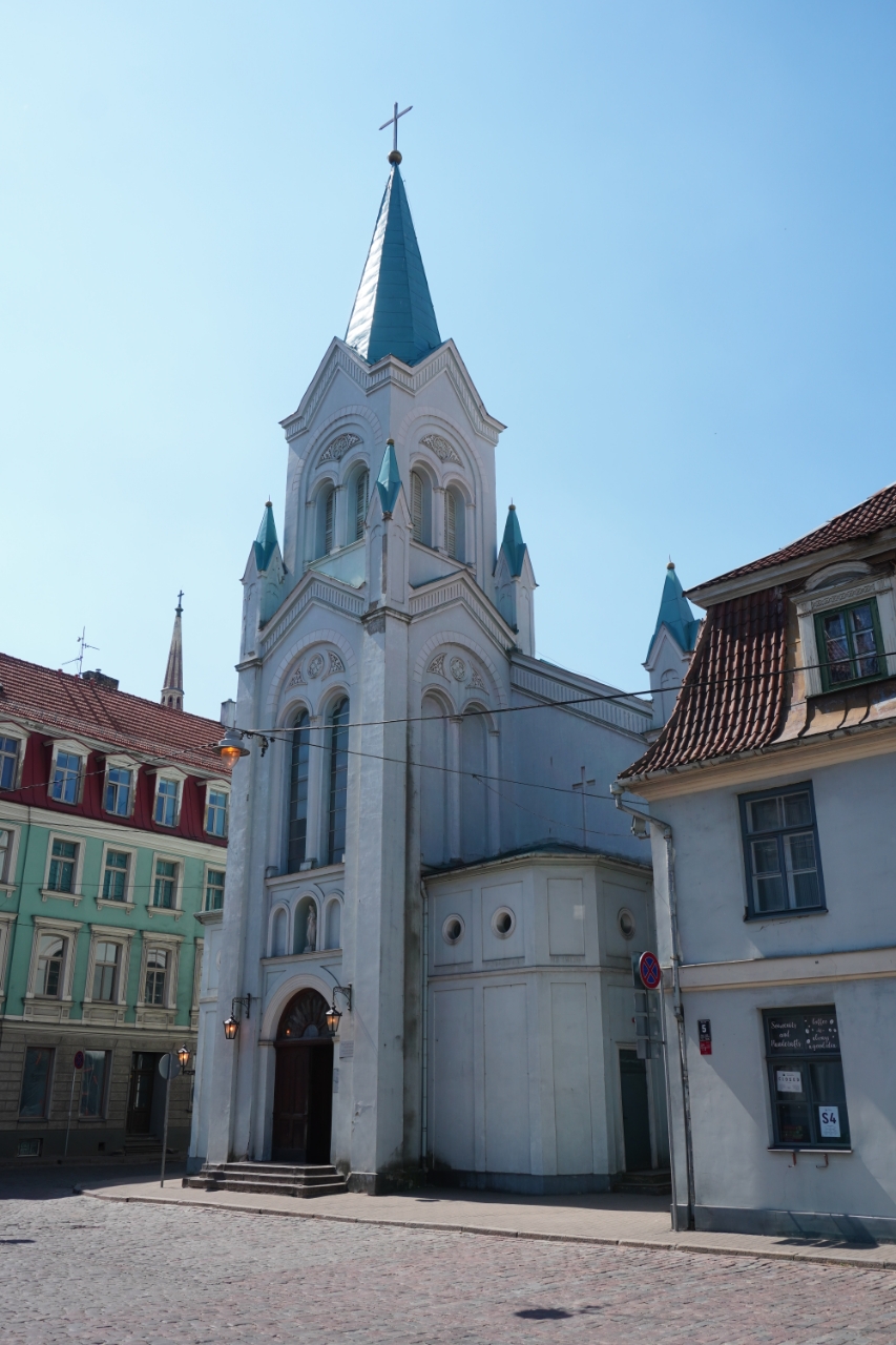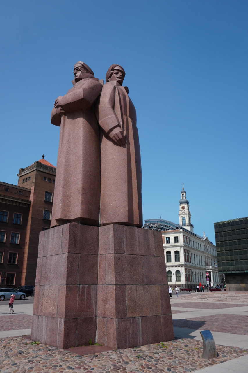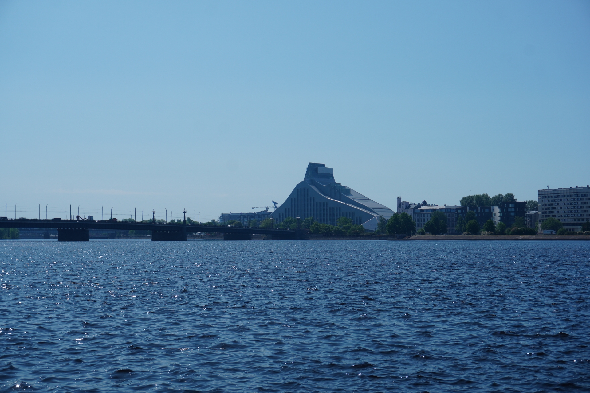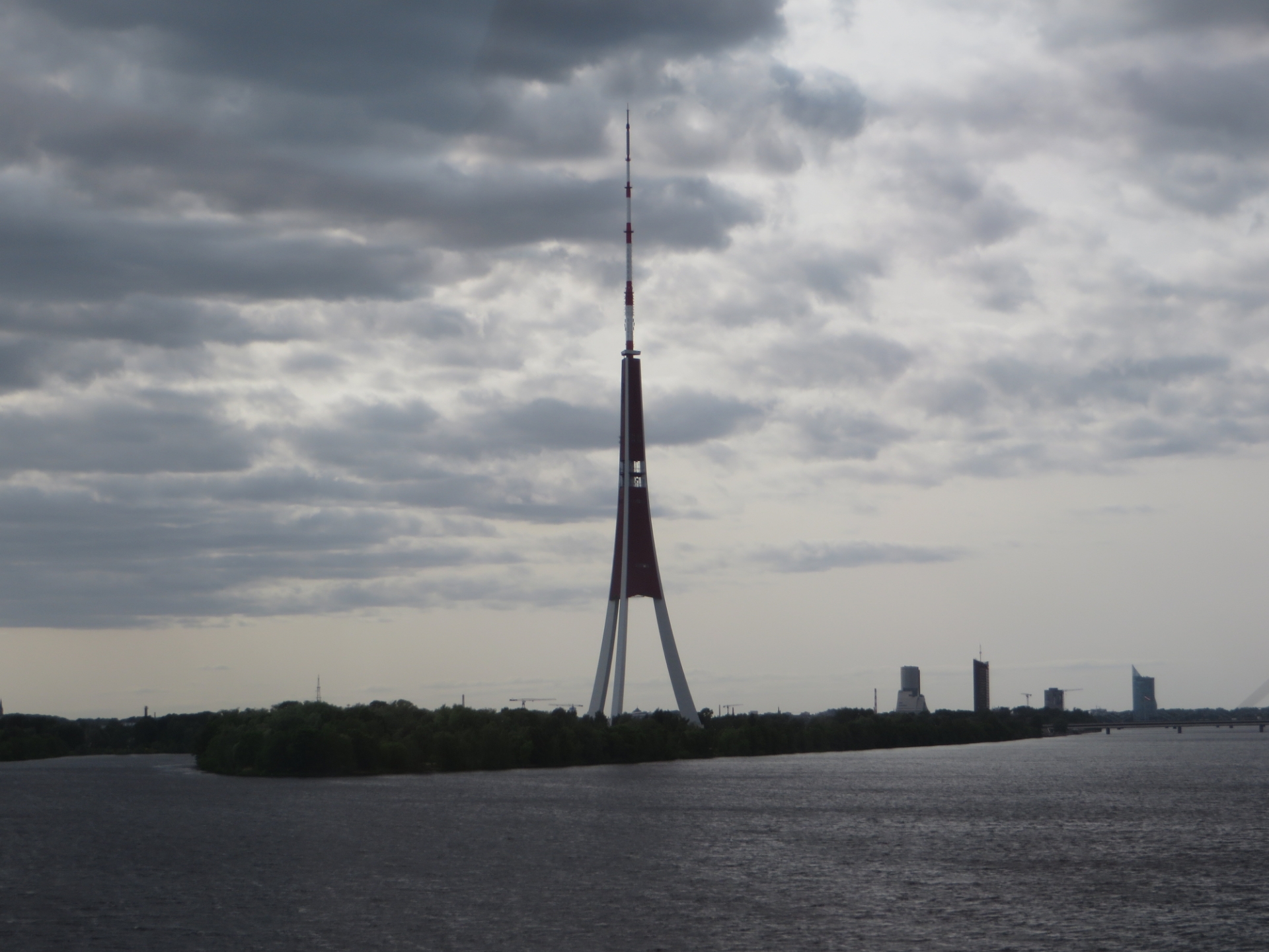 Im Fluß Düna steht der Fernsehturm, der angeblich 40 cm größer ist als der Berliner. Pöh. Dabei schwankt die Länge schon durch die Wärme um 2,5 Meter, ist ja eine Stahlkonstruktion.