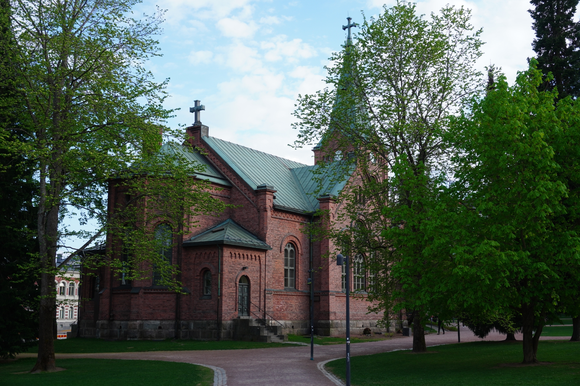 Der Dom von Tampere lohnt sich: von außen beeindruckender Granit, der dennoch leicht wirkt. Innen hell und weiß, die Bemalungen untypisch für Kirchen, (nackte) Jungen, die eine Girlande tragen. “Im Garten des Todes”. “Der verwundete Engel”. Sehr interessant.