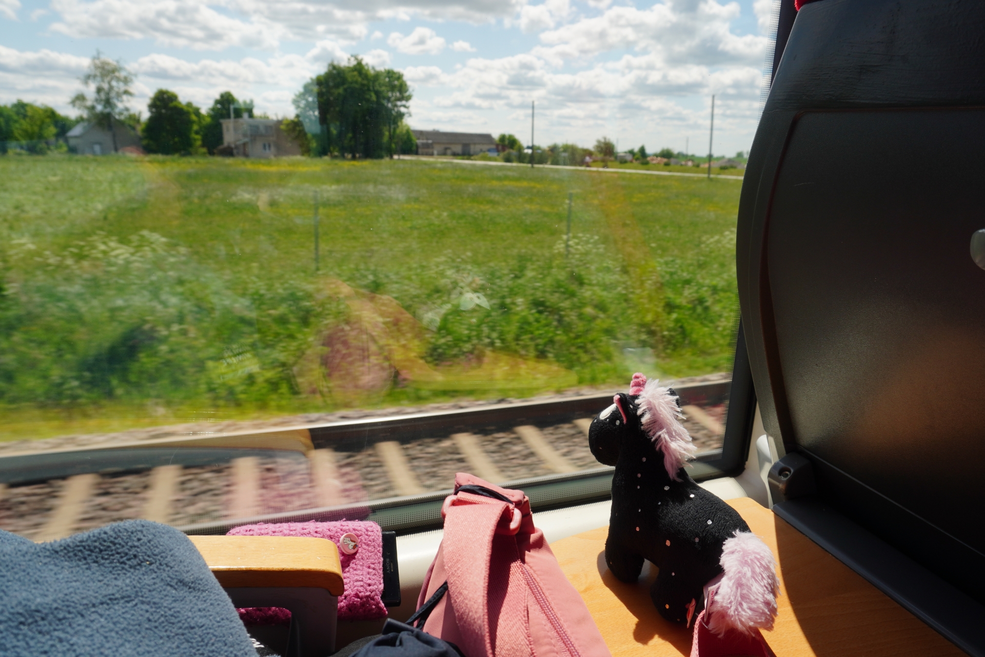 Einmal Umsteigen in Mockava, von der litauischen in die polnische Bahn. Auf litauer Seite gut ausgebaut und schnell, auf polnischer Seite erst einmal landschaftlich schön durch Weiden, allerdings langsam.
